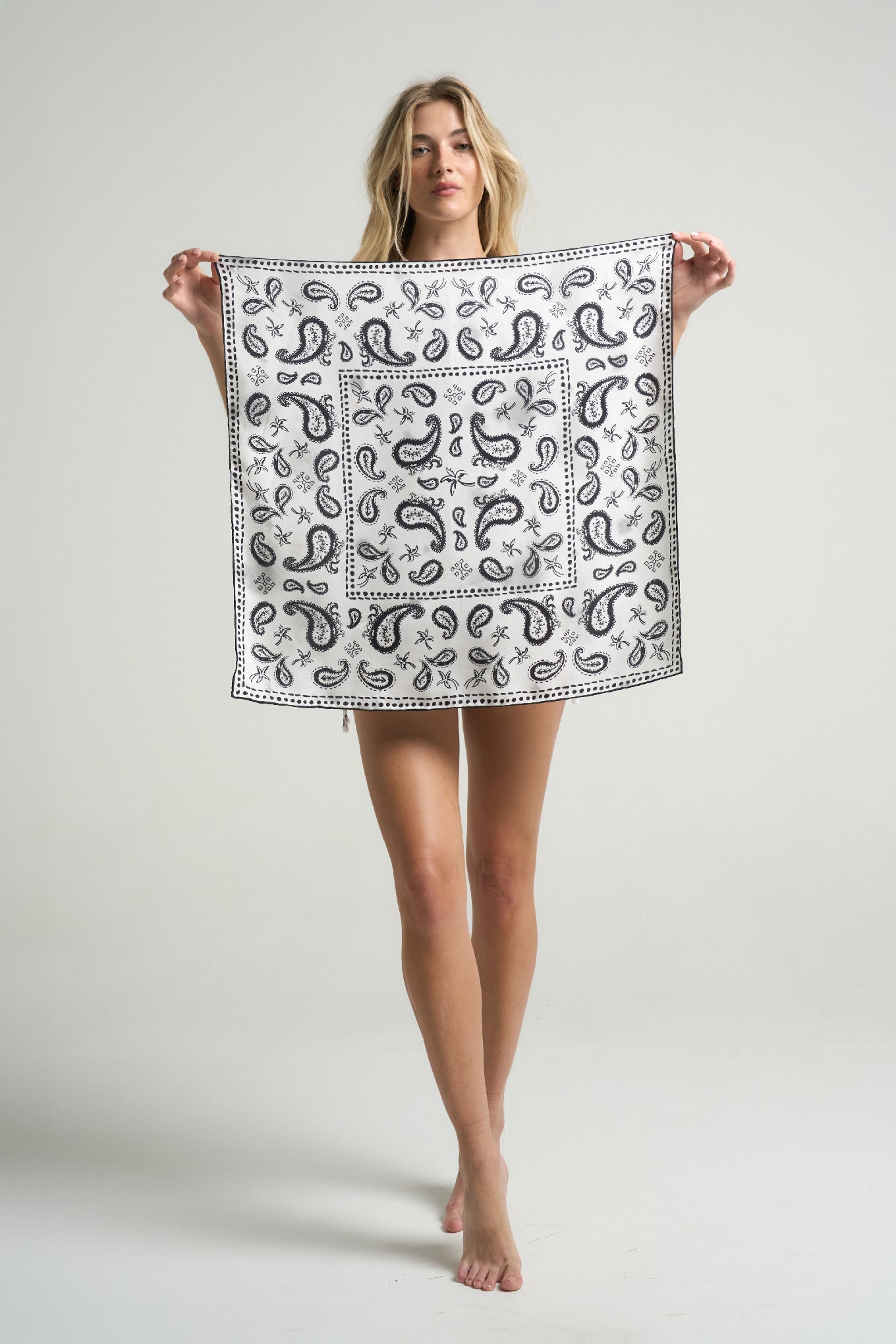 Introduce a touch of elegance to your accessory collection with the SIGAL Bandana Scarf Paisley White. Made from 100% silk, this luxurious scarf offers a delicate, lightweight feel and a soft, lustrous finish that’s perfect for any season. The hand-painted white paisley print brings an element of timeless sophistication, making it a versatile addition to any wardrobe.