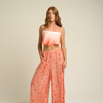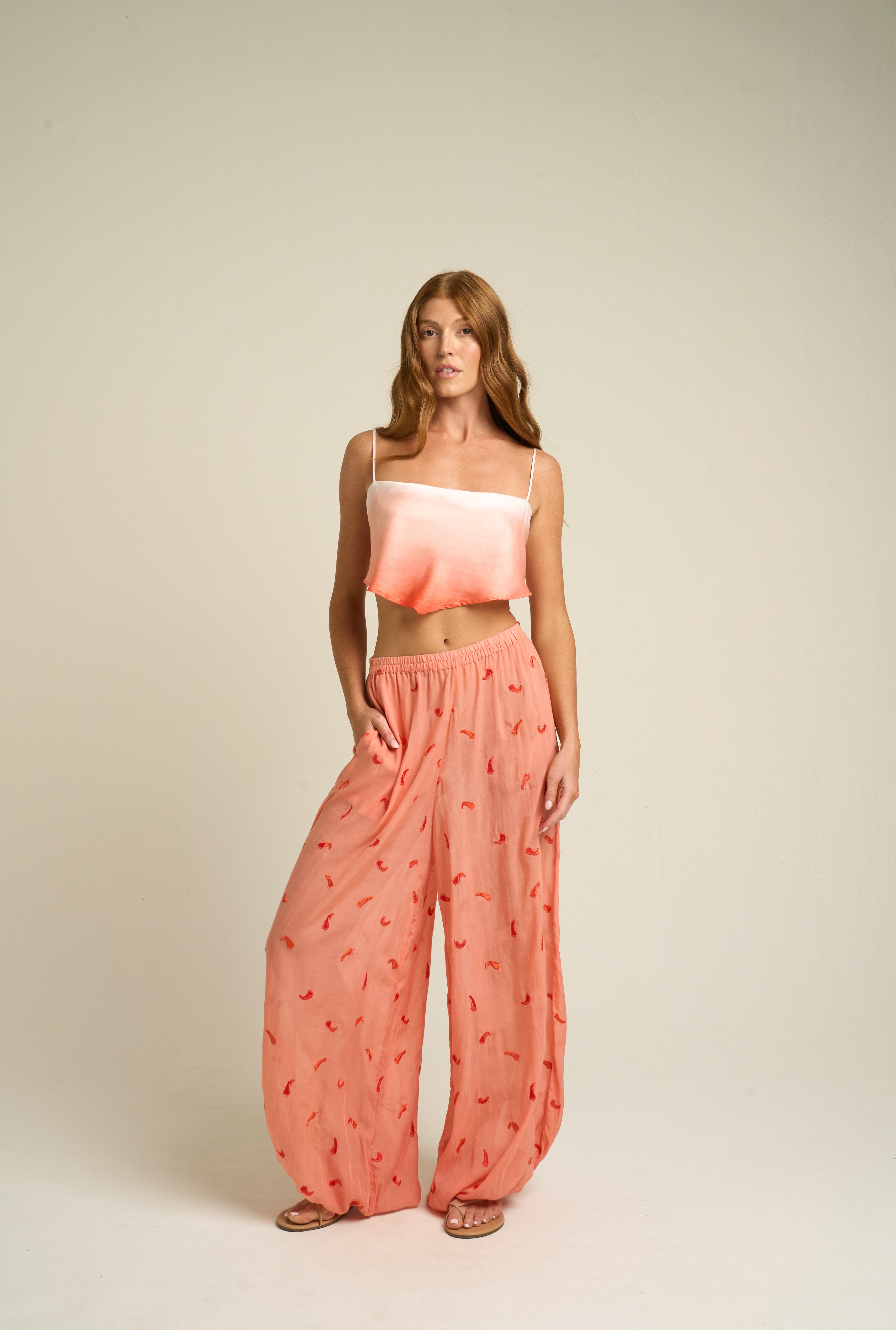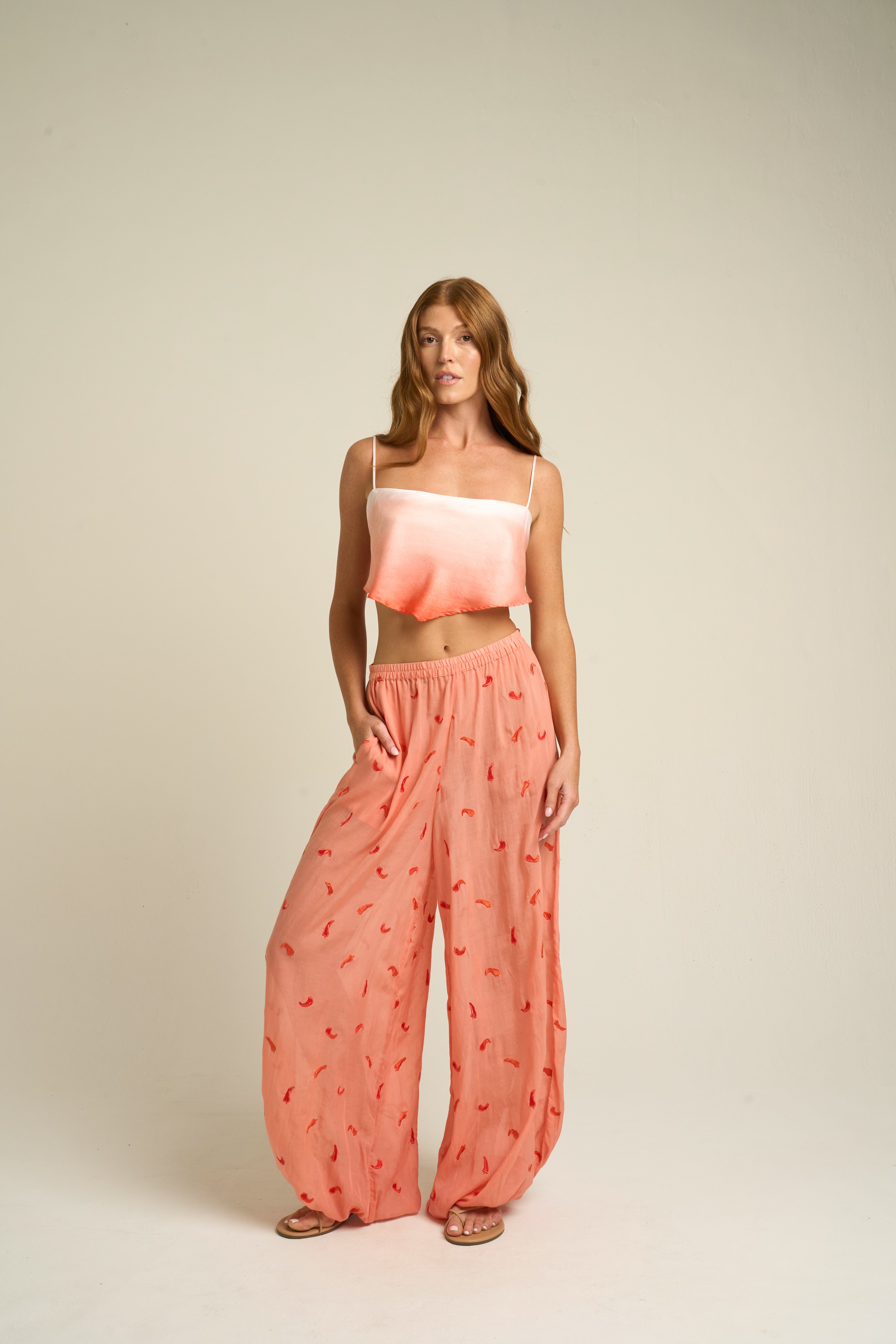 The hand-painted terracotta print brings warmth and depth to the piece, blending earthy tones that evoke the beauty of a sun-soaked landscape. Its minimalist yet eye-catching design makes it a versatile staple that transitions seamlessly from day to night, capturing the essence of laid-back sophistication.