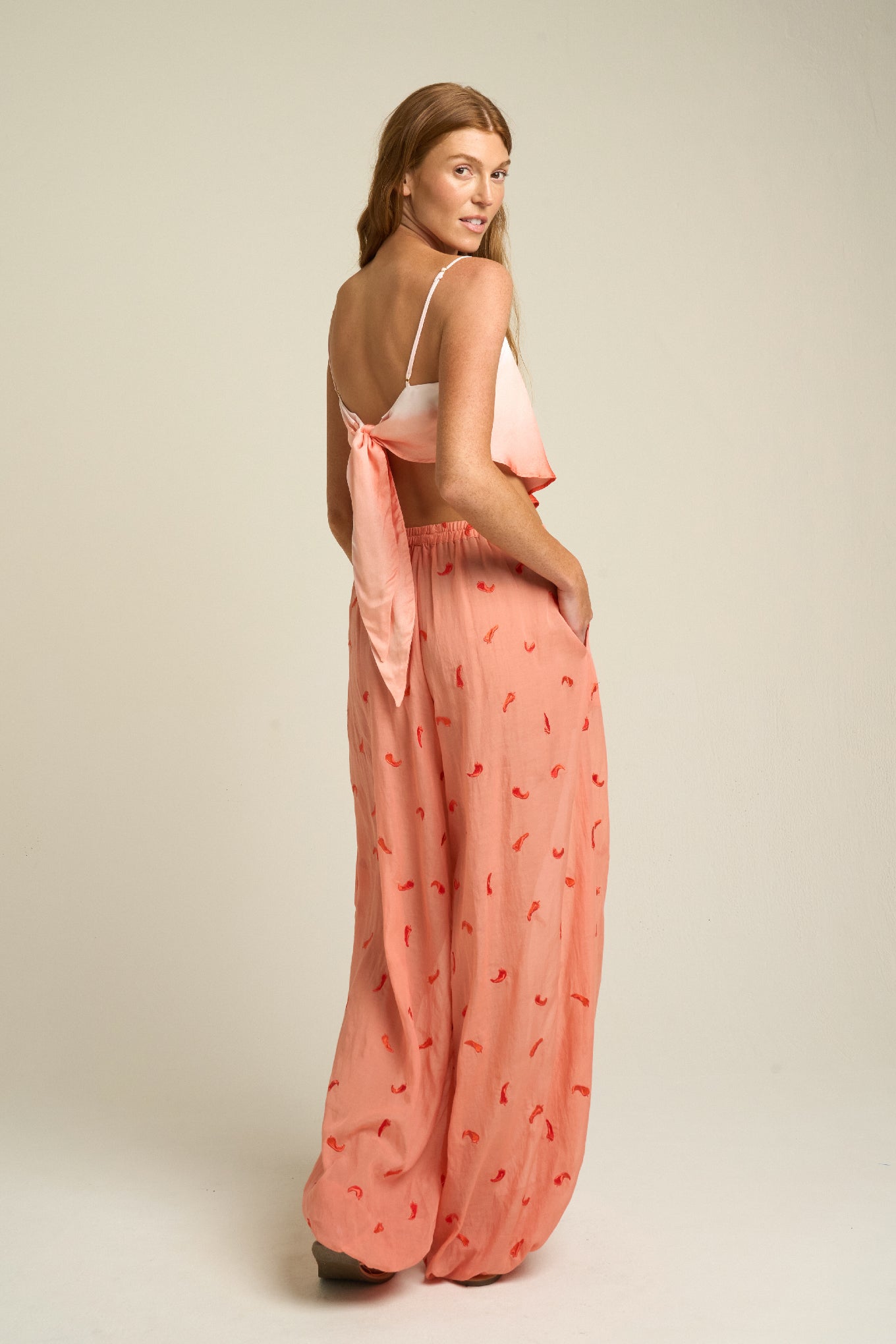 Elevate your resort style with the SIGAL Bandana Top: Terracotta. Crafted from 100% viscose, this top offers a lightweight, fluid drape with a soft, silky touch against the skin. Designed for both elegance and ease, it features a pointed front and delicate straps that tie at the back, creating a feminine and effortlessly flattering silhouette.