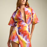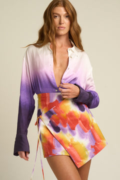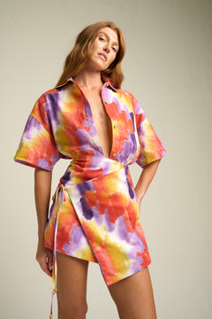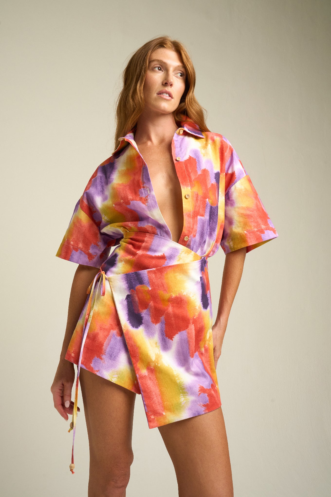 The SIGAL Mini Wrap Skirt: Tapestra brings a bold and artistic touch to your warm-weather wardrobe. Crafted from a lightweight blend of 55% linen and 45% cotton, this skirt offers a breathable, structured feel with a flattering wrap silhouette. The adjustable tie closure adds versatility and comfort, allowing for an effortlessly tailored fit.