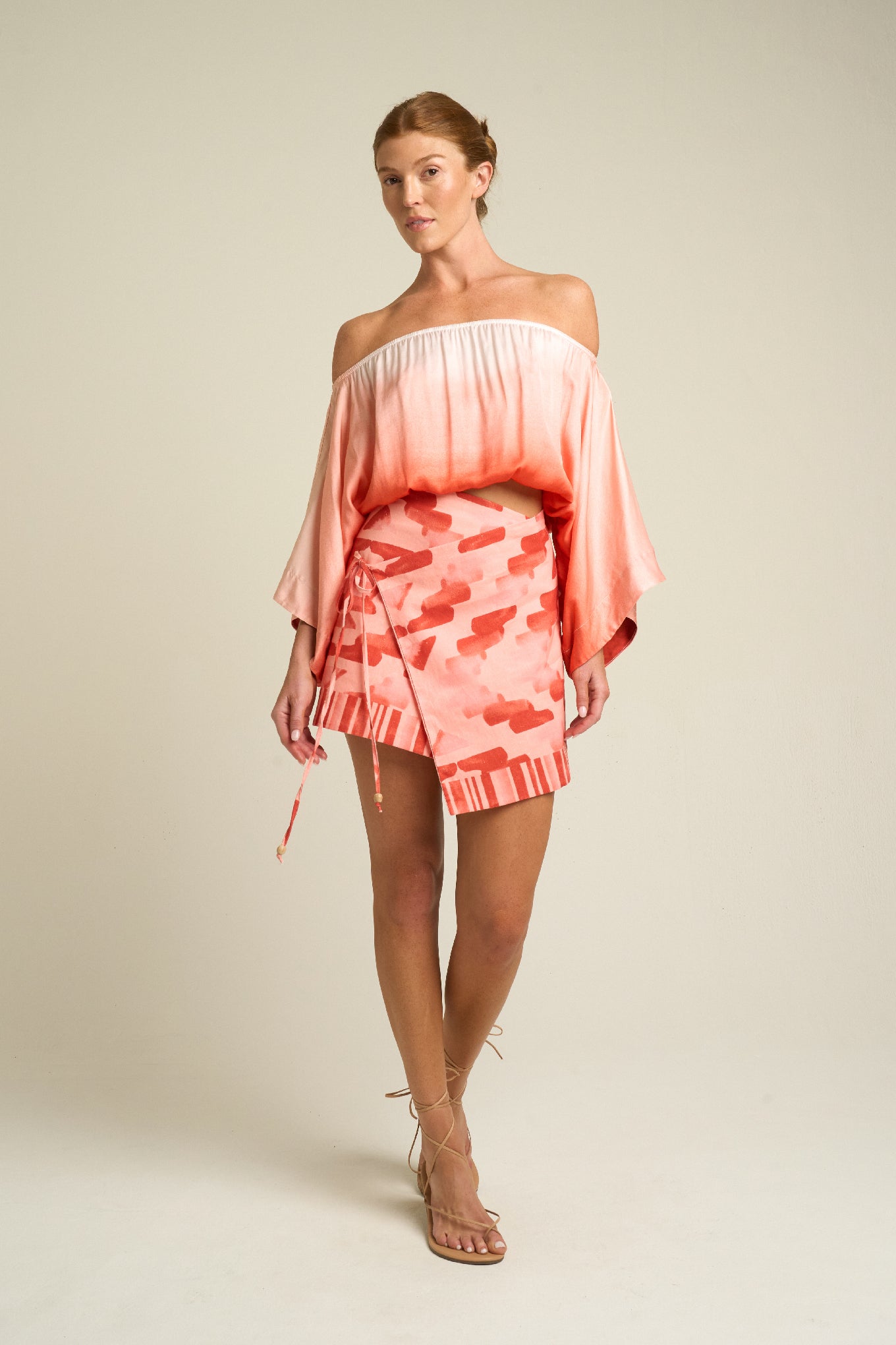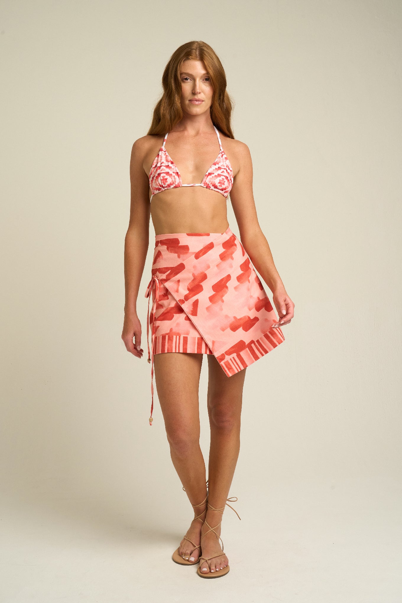 The SIGAL Mini Wrap Skirt: Mesa Tribal brings bold pattern and effortless charm to your wardrobe. Crafted from a breathable blend of 55% linen and 45% cotton, this skirt offers a structured yet lightweight feel, ideal for warm weather. The wrap-around silhouette flatters the waist and allows for an adjustable fit, combining comfort and sophistication in equal measure.