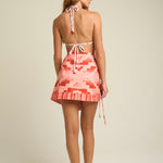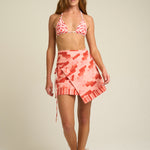 The hand-painted Mesa Tribal print showcases earthy terracotta tones and geometric motifs, inspired by natural landscapes and artisanal craftsmanship. Each brushstroke adds texture and depth, making this skirt a standout piece that transitions effortlessly from day to night.