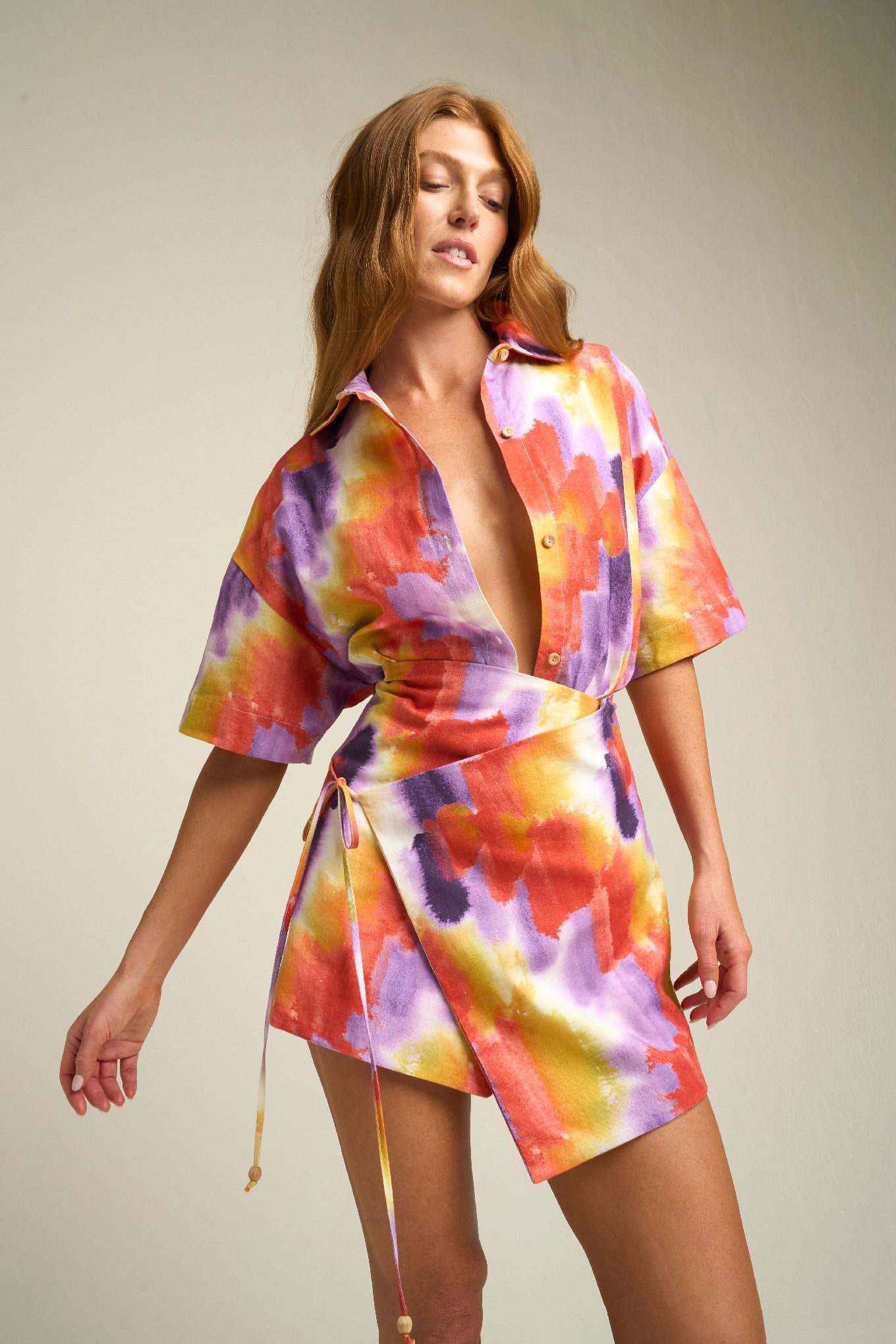 • Style Options: Pair with the matching mini wrap skirt for a coordinated set, or wear open over a swimsuit or tank top for an effortlessly cool, beach-ready outfit.